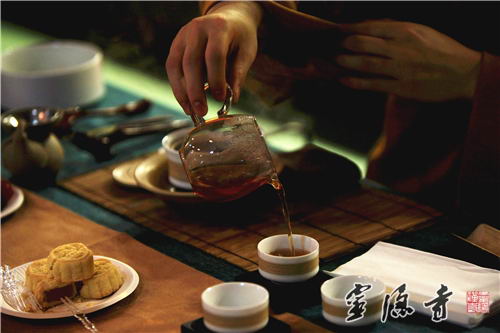 霊隠の禅茶文化を体験する住民たち