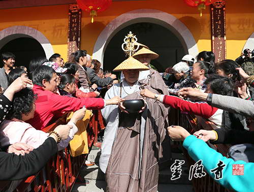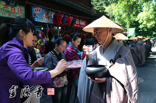 2014年5月6日(旧暦四月八日)は本尊釈迦牟尼仏のお誕生日である。杭州市仏教界によって挙行された2014年「東南佛国・杭州」の托鉢行脚(福慧行という大型の仏教慈善活動)に霊隠寺から70名ほどの法師が参加し、仏陀の時代の比丘僧団(仏教僧団)の托鉢行脚生活を再現した。托鉢行脚で供養された30万元のお金はすべて「五水共治」というプロジェクトに寄付され、人間仏教(じんかんぶっきょう)の慈悲精神を高揚した。当日、霊隠寺「杭州雲林公益基金会」の標識を披露する儀式も行われた。